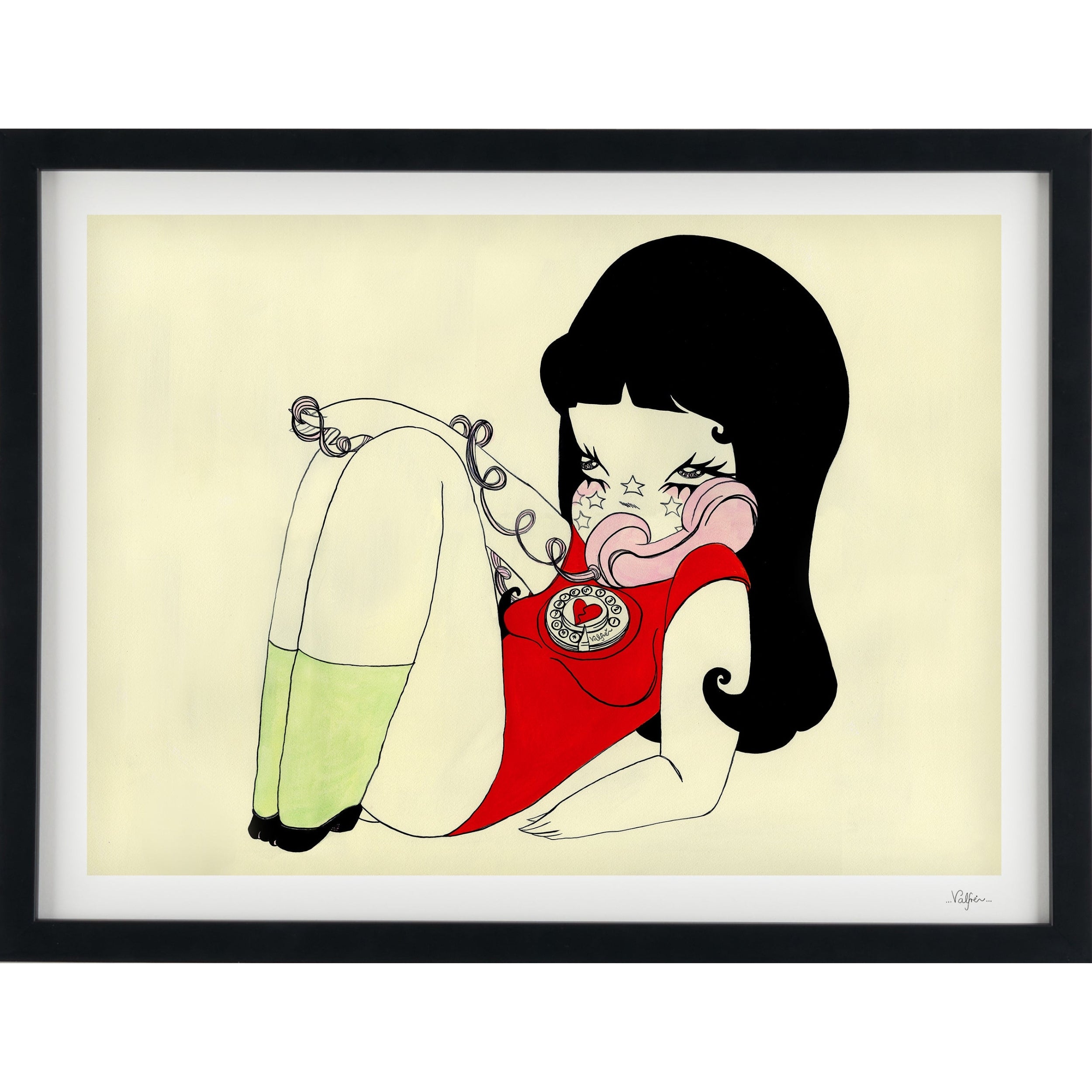 Marked by bold lines and expressive female figures, her art is deeply shaped by her bicultural upbringing, blending elements of Mexican heritage with the aesthetics of West Coast youth culture.