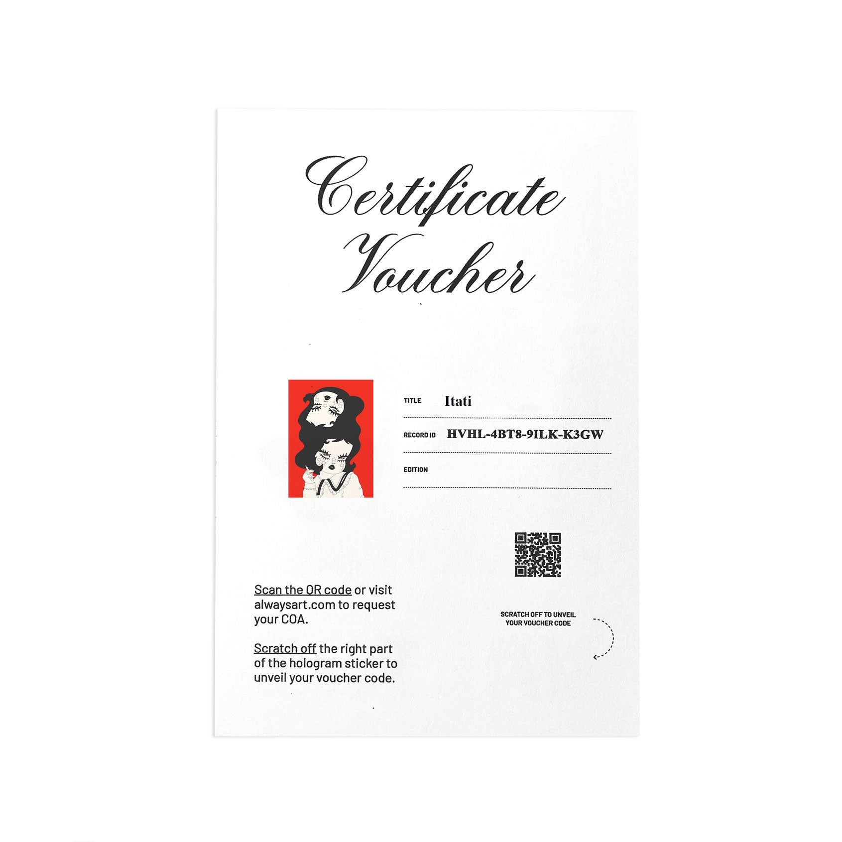 Each print will be signed, numbered and will include a voucher to register your work and receive your official Certificate of Authenticity by Always Art.