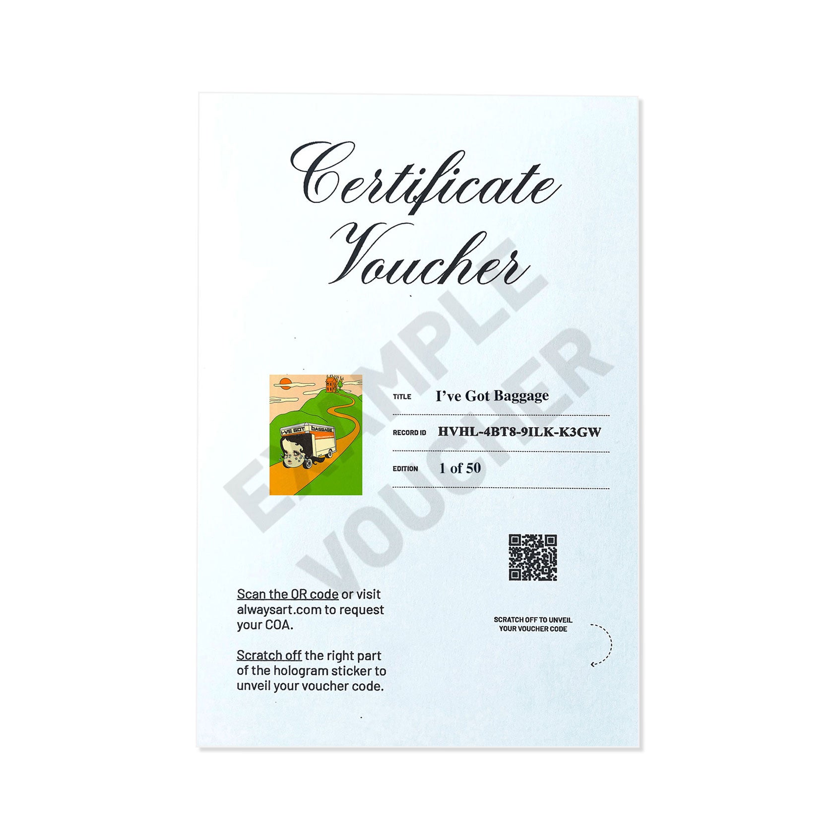Each print will be hand-signed, numbered, embossed and will include a voucher to register your work and receive your official Certificate of Authenticity by Always Art.