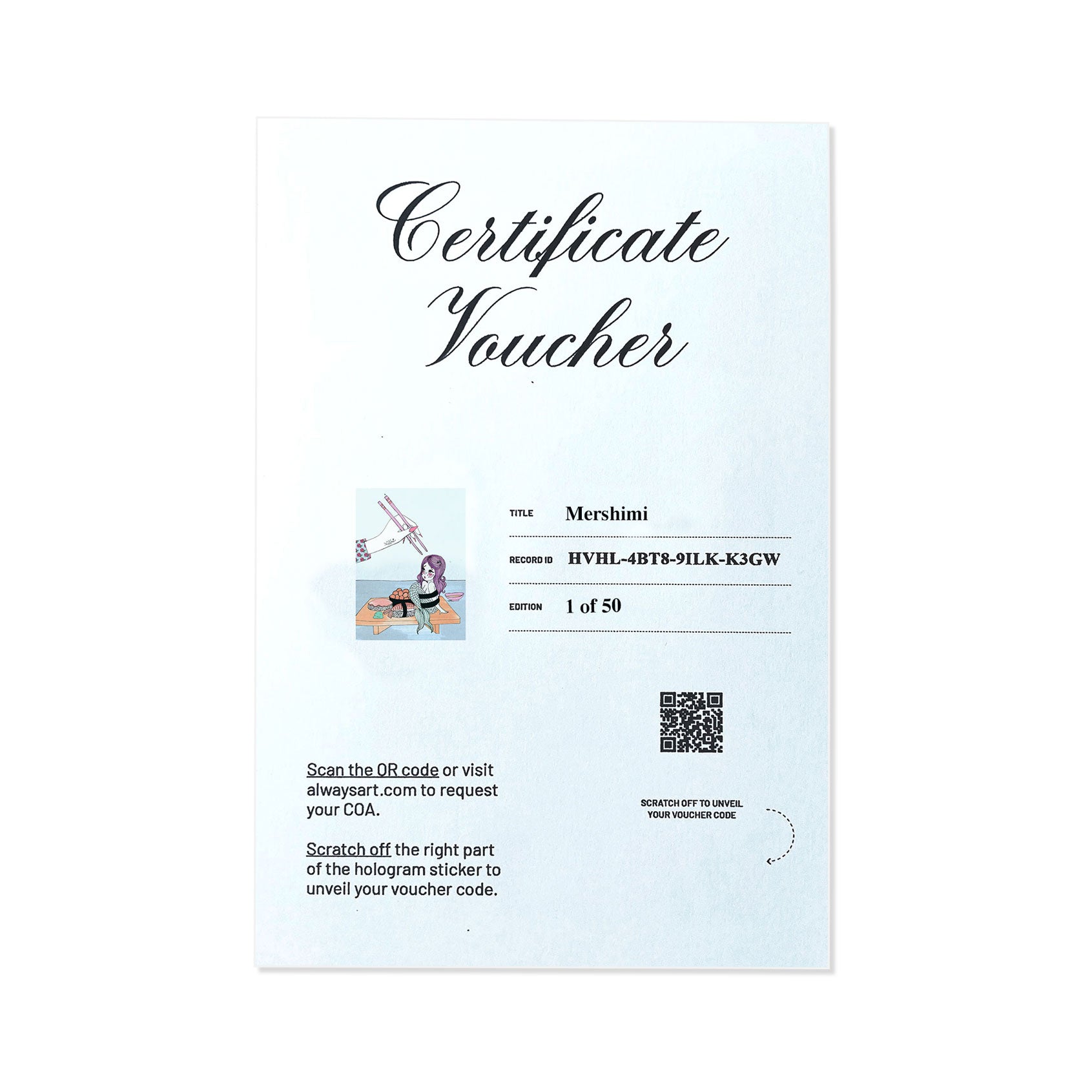 Each print will be numbered and will include a voucher to register your work and receive your official Certificate of Authenticity by Always Art.