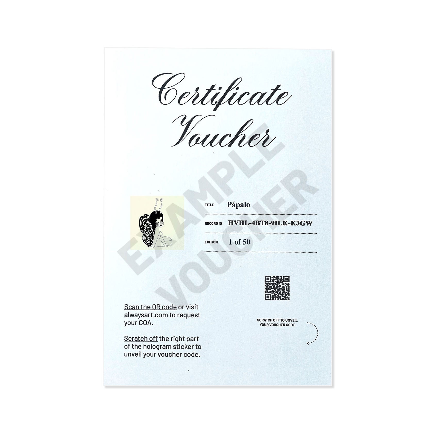 Each print will be hand-signed, numbered, embossed and will include a voucher to register your work and receive your official Certificate of Authenticity by Always Art.