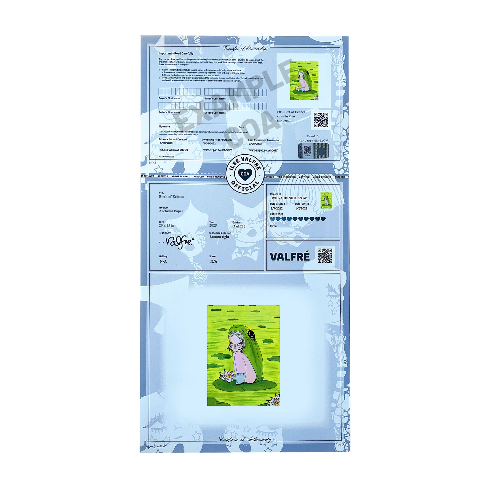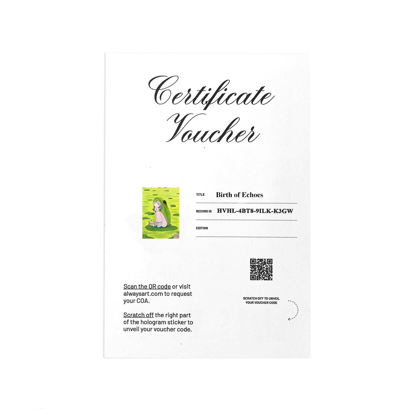 Each print will be signed, numbered and will include a voucher to register your work and receive your official Certificate of Authenticity by Always Art.