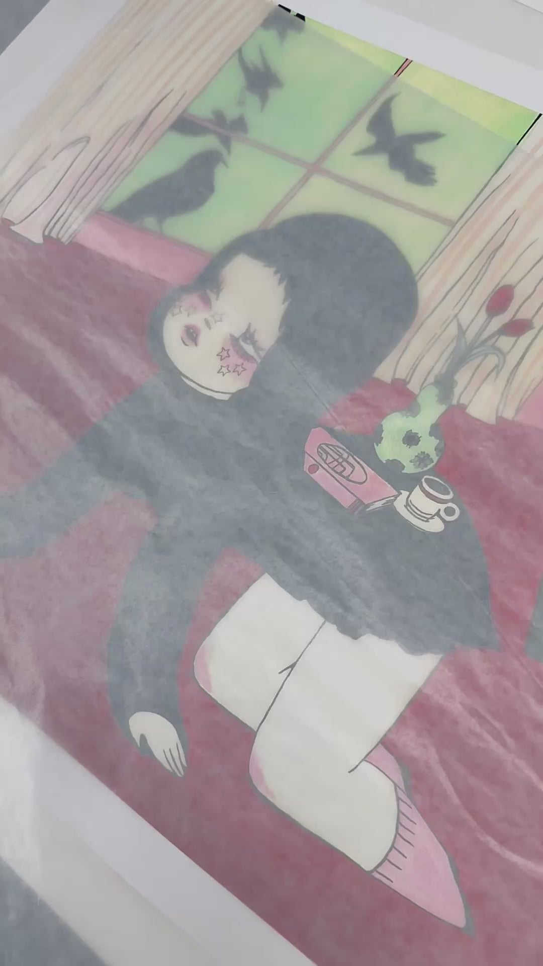 All prints are meticulously inspected before being shipped. Each edition will be handled with protective gloves, flattened, dry brushed to assure there is no debris, rolled in a protective sheet and packed in a thick cardboard tube to prevent damages during transit.